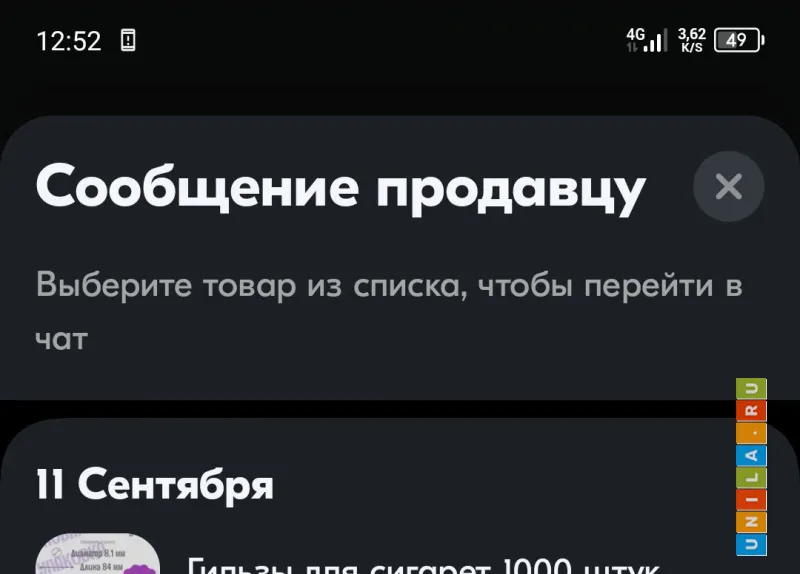 Выберите продавца из списка ваших заказов, чтобы отправить сообщение