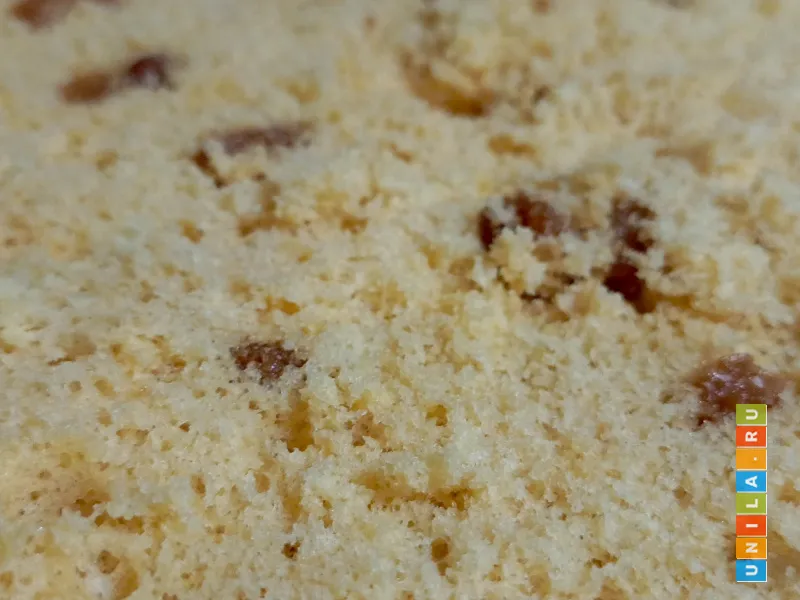Так выглядит испечённый бисквит в разрезе, порезанный на два коржа